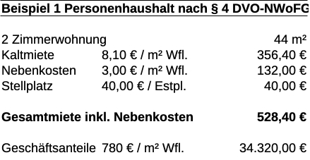 Nutzungsgebühr nach § 4 DVO-NWoFG 8,10 je m²/Monat)